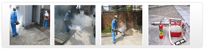 昆蟲生長調節劑投擲完畢後,使用熱霧機,將熱霧機出藥口朝內伸入,針對污水、廢水池逐一實施煙薰處理,完成後立即將鐵蓋蓋好密閉。